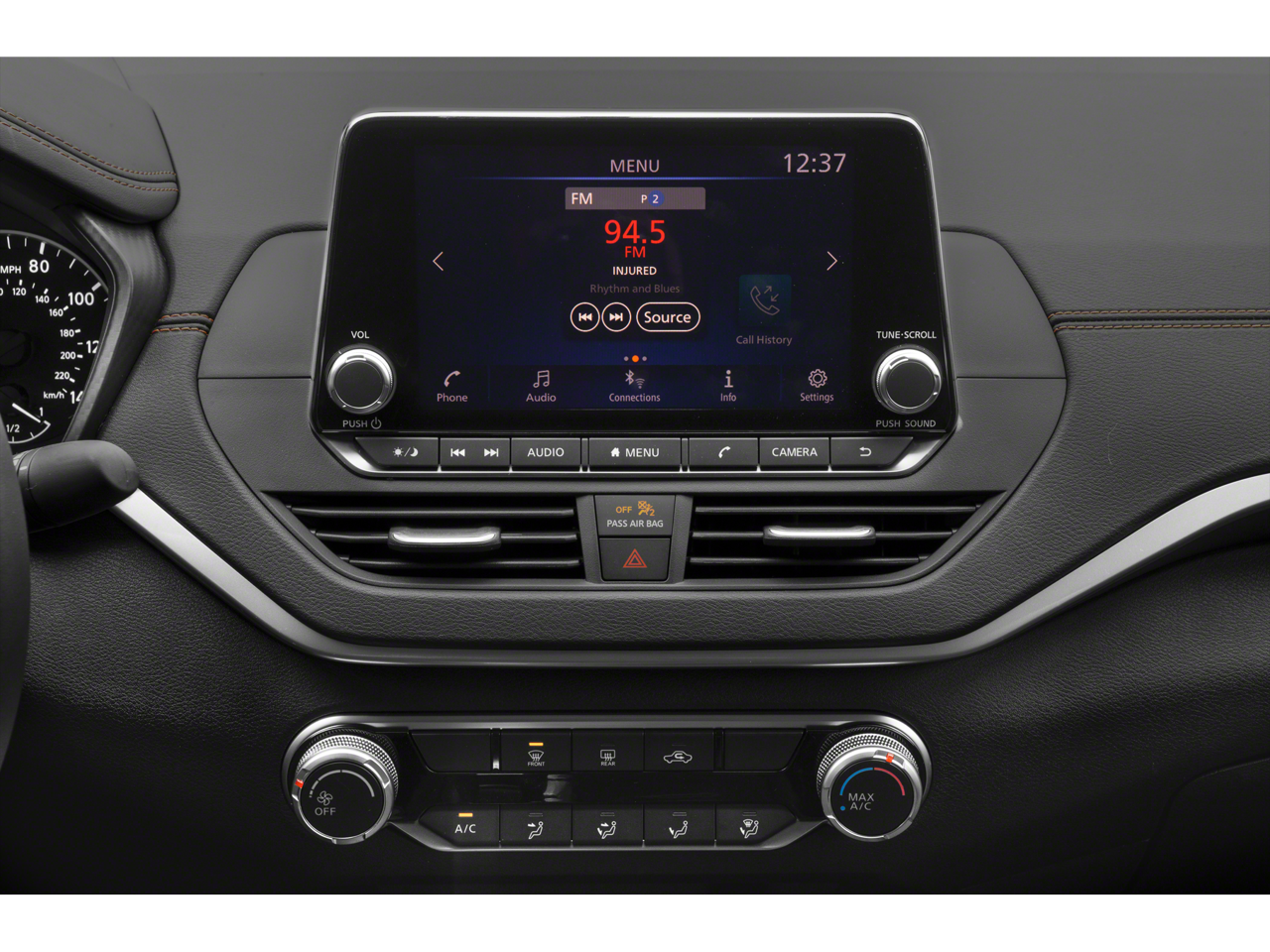 - Radio: AM/FM Audio System -inc: RDS, MP3, aux-in, 6 speakers, NissanConnect featuring Apple CarPlay, Android Auto, 8" color display w/multi-touch control, 1 front illuminated USB port (type-C) for compatible devices, SiriusXM radio w/advanced audio features, Bluetooth hands-free phone system, streaming audio via Bluetooth, hands-free text messaging assistant, 2 rear illuminated USB ports (type-A, 1 type-C) for compatible devices, Siri Eyes Free/Google Assistant voice recognition
